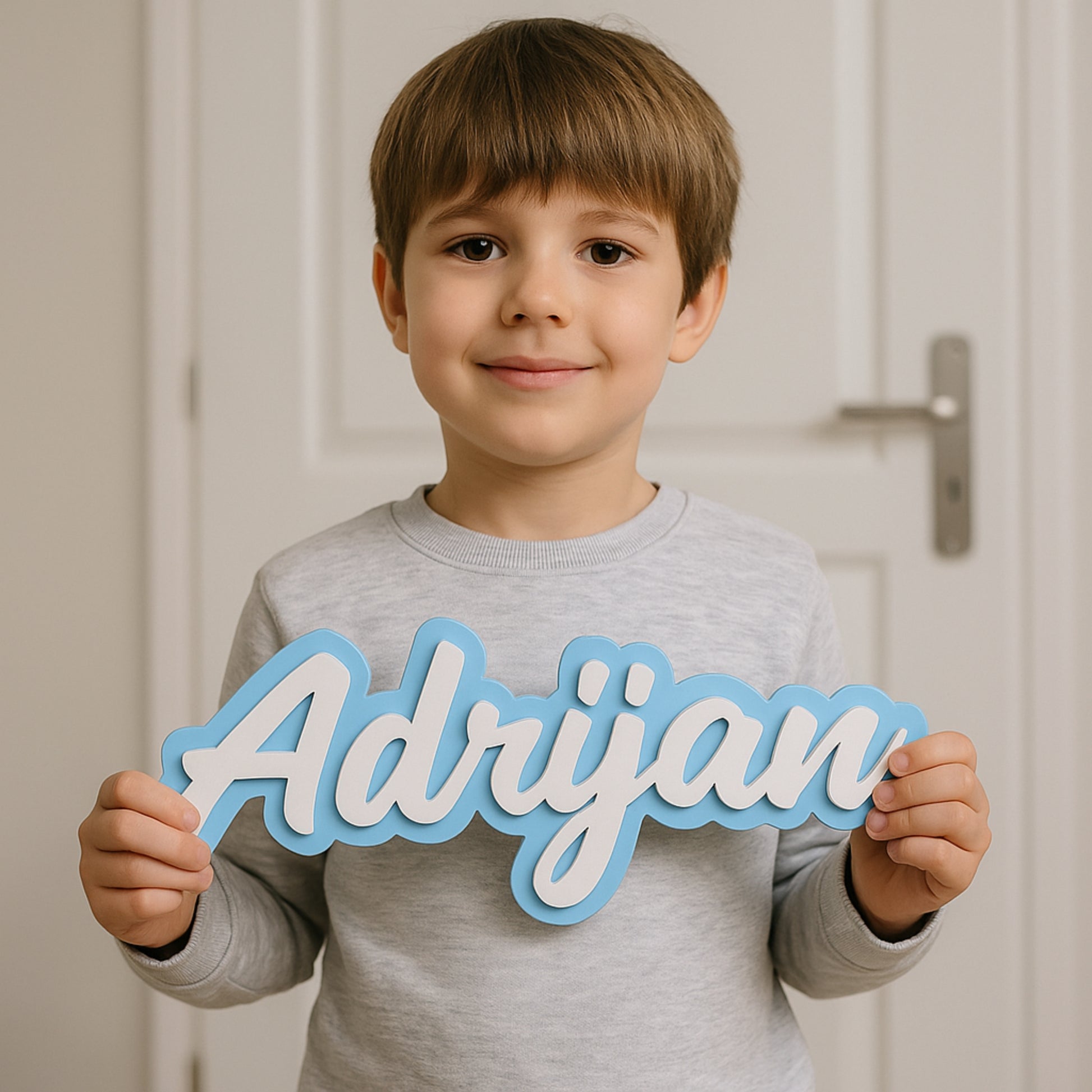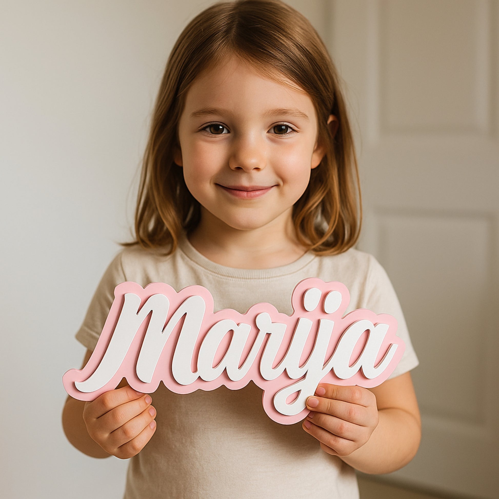 Ime vašeg djeteta postaje središnji ukras prostora — detalj koji unosi toplinu i osobnost.