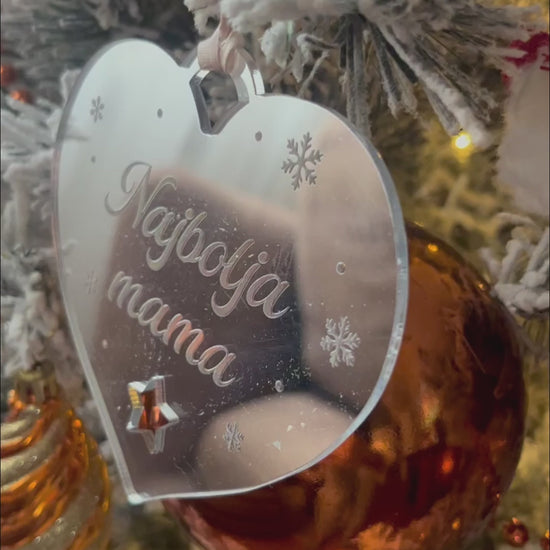 Poklonite toplinu, ljubav i blagdanski duh uz personalizirani božićni ukras u obliku srca, izrađen od kvalitetnog pleksiglasa. Ovaj ukras posebno je omiljen za darivanje – idealan za obitelj, prijatelje, partnere, kumove i sve drage osobe.